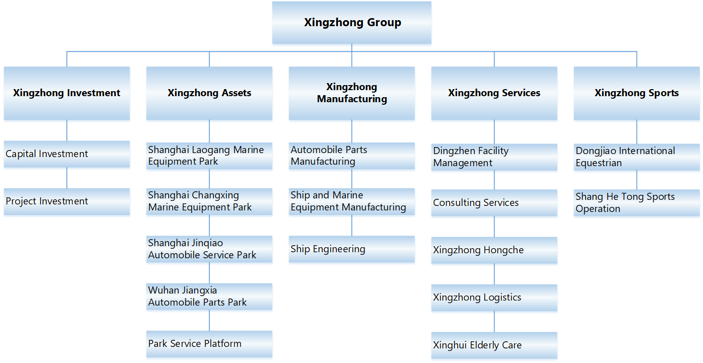 Shanghai Xingzhong Entity (Group) Co., Ltd. (referred to as Xingzhong Group or the Group hereafter) was founded in 1994 and the year 2009 witnessed its combination of different subsidiaries which transformed it into a corporate group and also a holding company.n the year 2011, the Group already consisted of 7 business units: modern ship-related services, automotive parts manufacturing, supply chain management, sports, Xingzhong Services, asset management and investment management. A great momentum can be seen across all the 7 business categories which has been propelling the Group forth toward the mission of “Becoming a 100-year Enterprise that Benefits the Society” along the path of the corporate spirit which is “Honest, Pragmatic and Enterprising”. Currently the Group has 6 wholly-owned subsidiaries (2000 employees) and also has controlling stakes or non-controlling stakes in other dozens of subsidiaries. Its total assets amount to 6.5 billion RMB and the annual sales revenue is over 2.2 billion RMB.